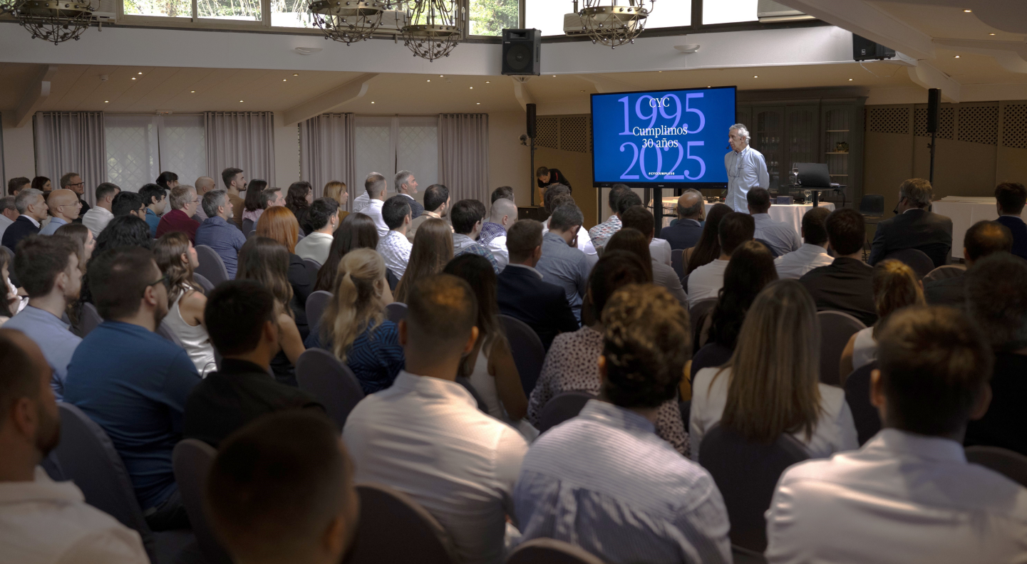 Durante la jornada, quisimos poner en valor el papel de las personas que forman parte de CYC, así como los hitos alcanzados a lo largo de estas tres décadas. El evento incluyó la intervención de nuestro Director General, un emotivo vídeo con testimonios y la entrega de reconocimientos a quienes llevan 25 años en la empresa.